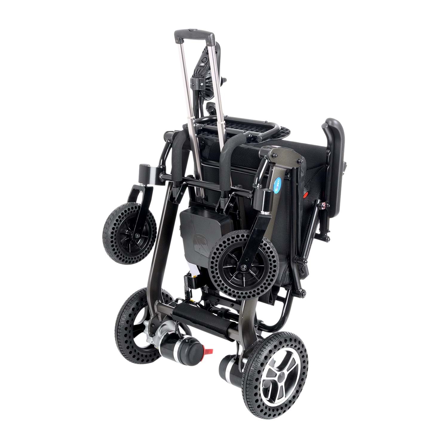 İç ve Dış Mekanlarda Kullamına Uygun Katlanabilir Alüminyum Şase Korozyona Dayanıklı Elektrostatik Boyalı 180wx2 motor DC24V 24v 10ah lityum Pil Oturma genişliği 41 cm Oturma derinliği 36 cm Sırt yüksekliği 42 cm Yukarı hareketli kolçaklar Geriye katlanır ayak paleti Çıkartılabilir itme kolları Geriye devrilmeyi önleyici (antipper tekerlekler) Kolay katlanabilir Katlandığı zaman kolay taşıyabilmek için çekme kolu 100 kg taşıma kapasitesi Dıştan dışa 62 cm Toplam yüksekliği 96 cm Oturma yüksekliği 54 cm Toplam uzunluğu 109 cm 23 kg ağırlığı 15-20 km arası menzil Saatte 6 km hız Silikon dolgu ön tekerlekler 8’’ Silikon dolgu arka tekerlekler 10‘’