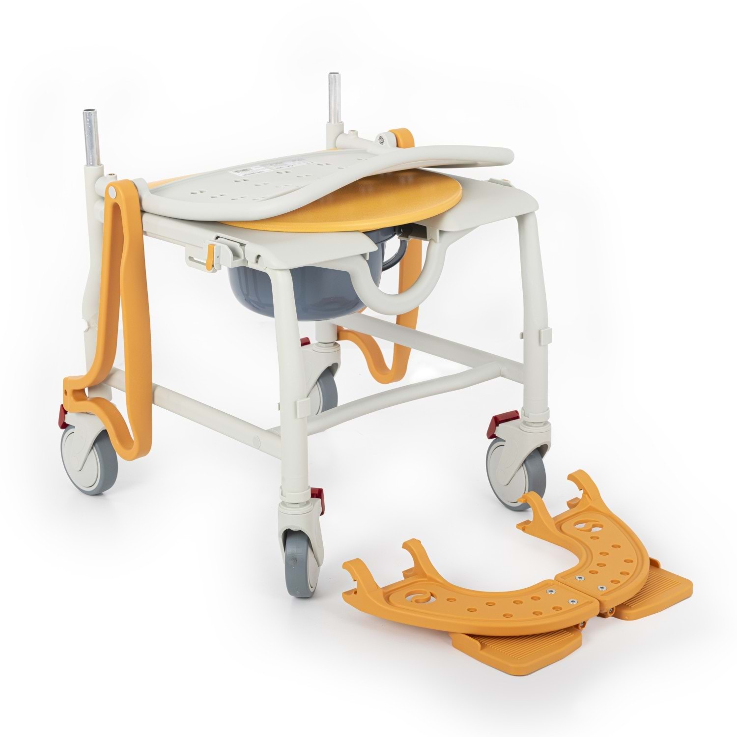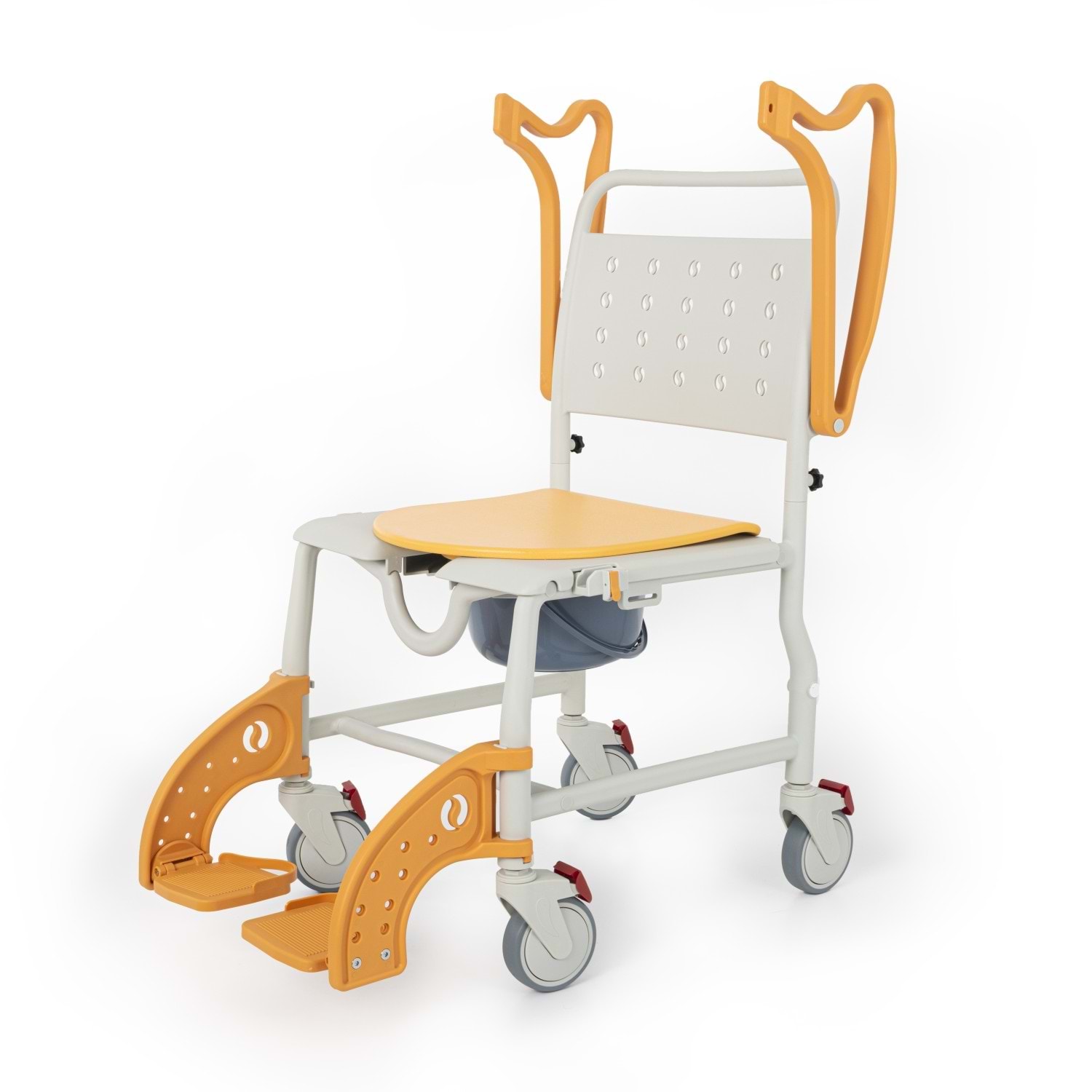 Ergonomik tasarımı sayesinde kullanıcıya destek sağlar, refakatçiye kolay kullanım imkânı sunar. Tekerlekli yapısı, fren sistemi ve katlanabilir ayaklıkları sayesinde güvenli taşıma ve sabitleme yapılabilir.