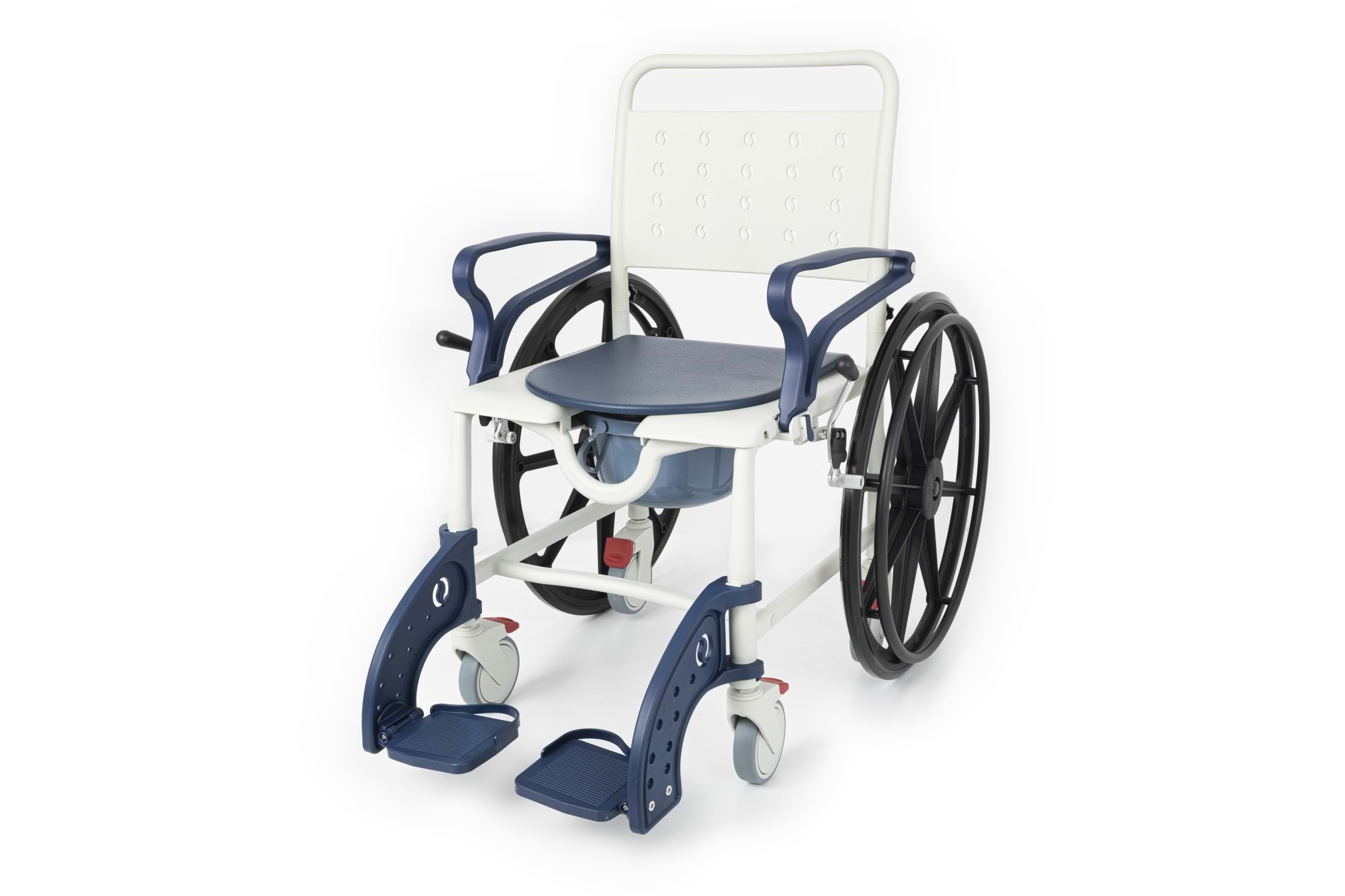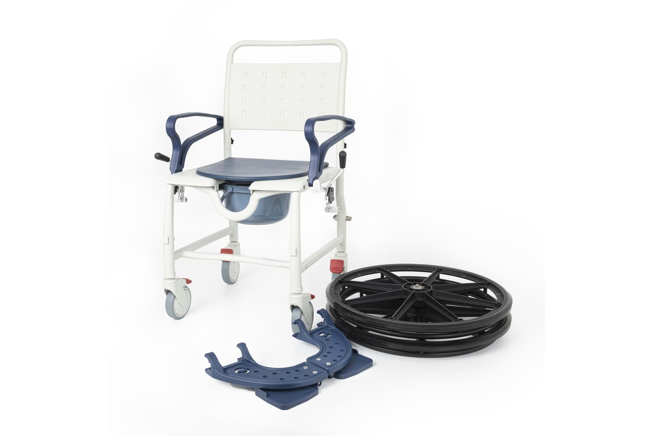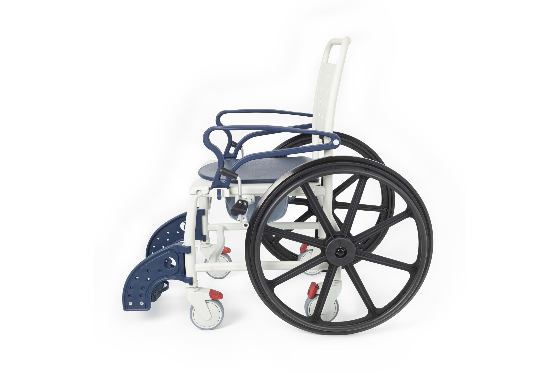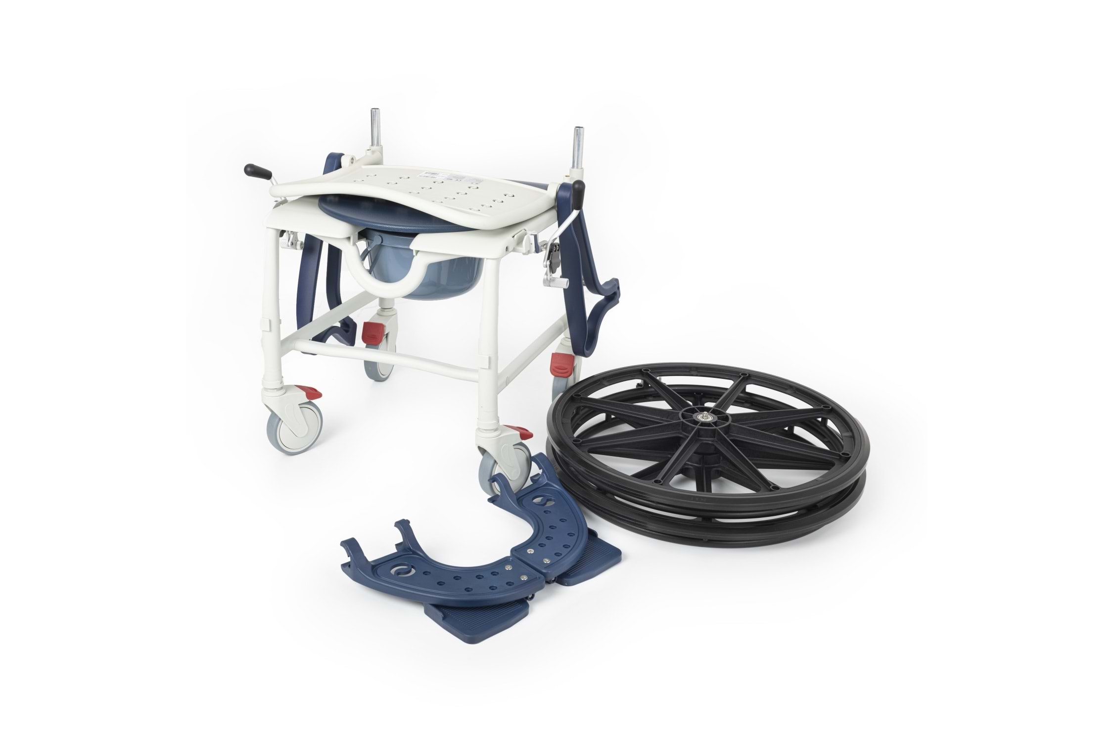 Çift Kullanım Seçeneği ile Maksimum Esneklik Bu model, arka kısmında bulunan büyük çaplı tahrik tekerlekleri sayesinde kullanıcının kendi başına hareket edebilmesini sağlar. Ancak ihtiyaç durumunda, arka tekerlekler kolayca çıkartılarak sandalye, dört küçük tekerlek üzerinde refakatçi kontrollü bir banyo-tuvalet sandalyesi olarak da kullanılabilir. Bu pratik özellik, ürünü hem ev tipi kullanımda hem de profesyonel bakım ortamlarında ideal kılar.