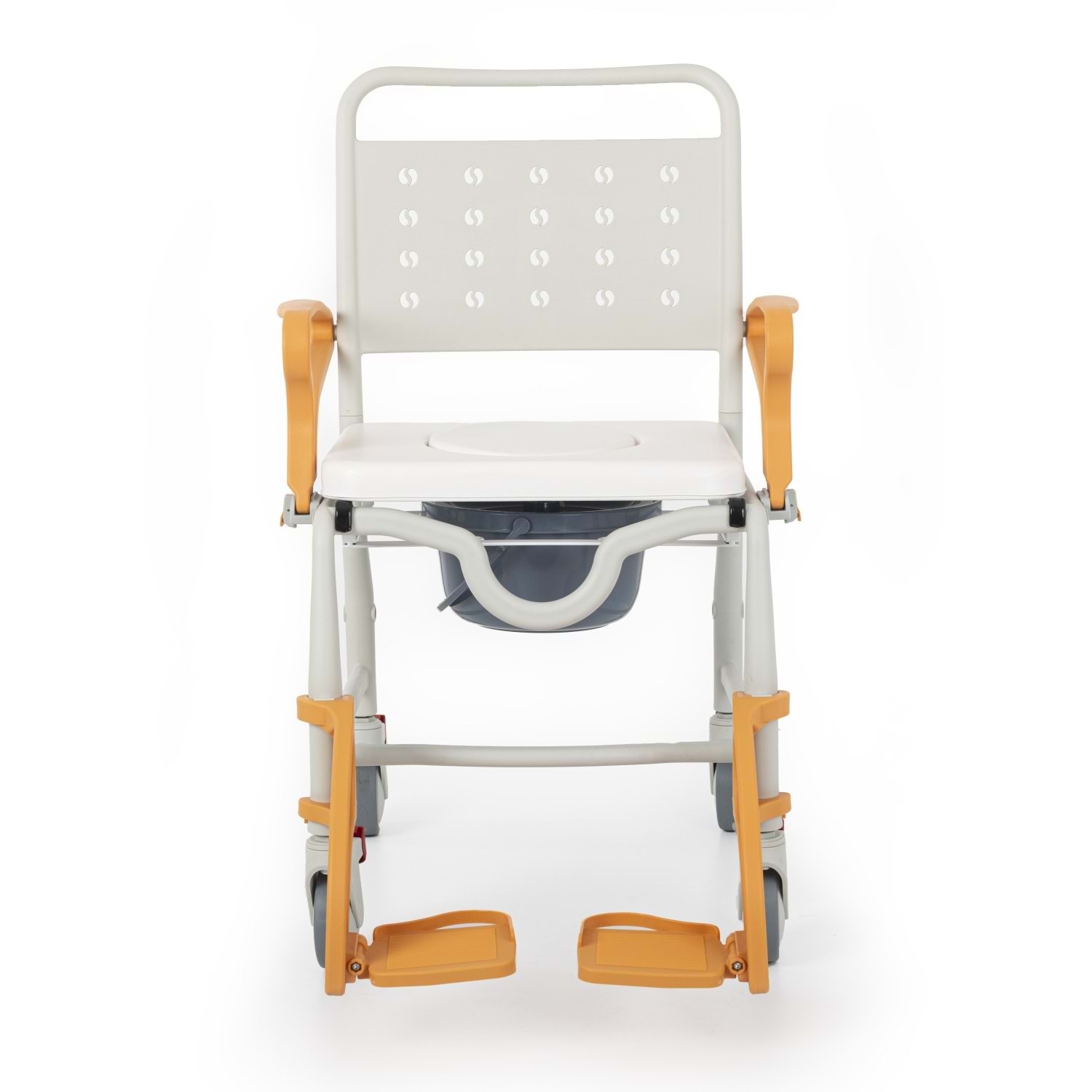 Sandalye; bakım verenin kontrolünde kolayca hareket ettirilebilen4 adet küçük, yüksek manevra kabiliyetine sahip tekerlekile donatılmıştır. Tüm tekerleklerde bulunanfren sistemi, maksimum güvenlik sağlar. Küçük tekerlekli tasarımı sayesinde hem ev içi dar alanlarda hem de banyo gibi ıslak zeminlerde kaymadan rahatça kullanılabilir.