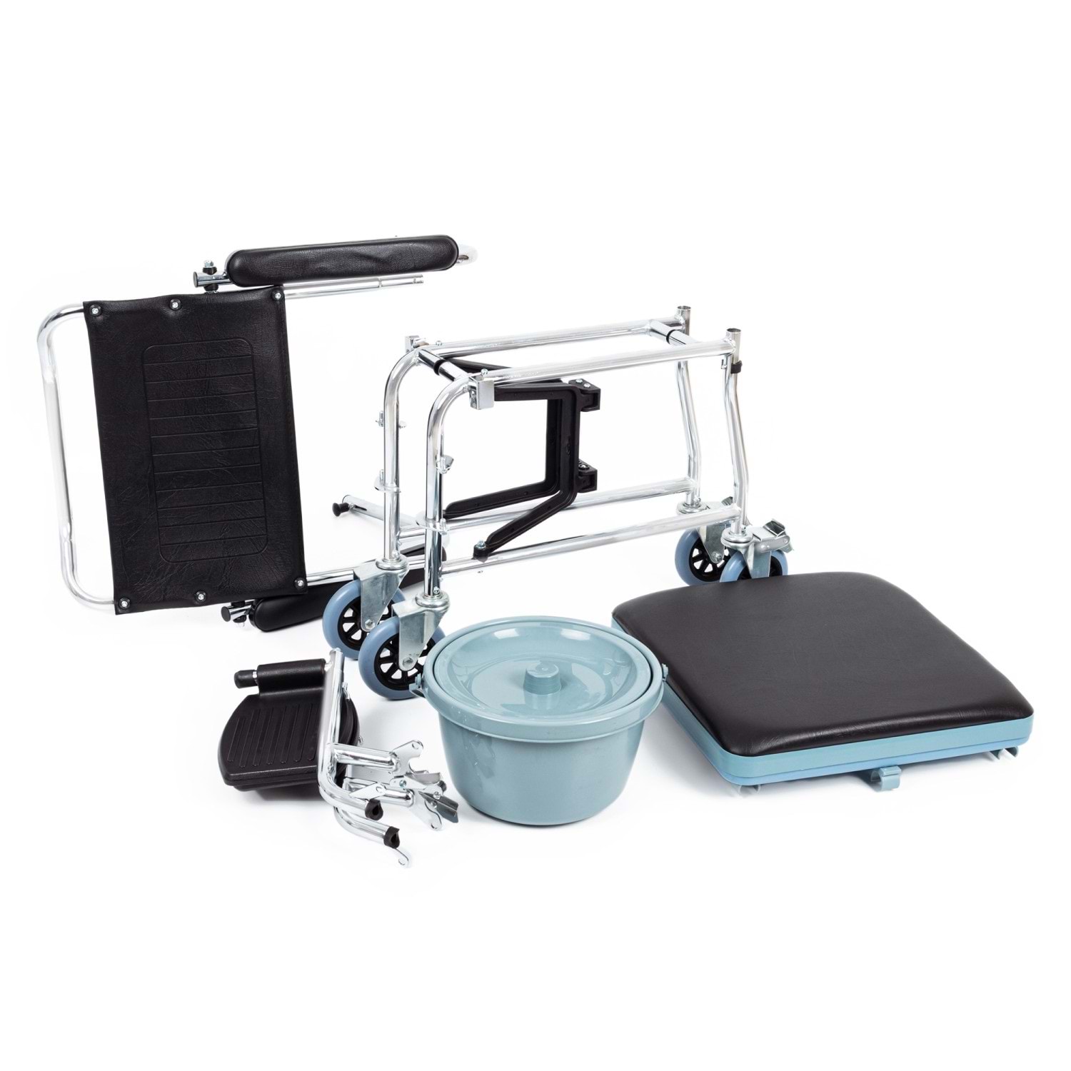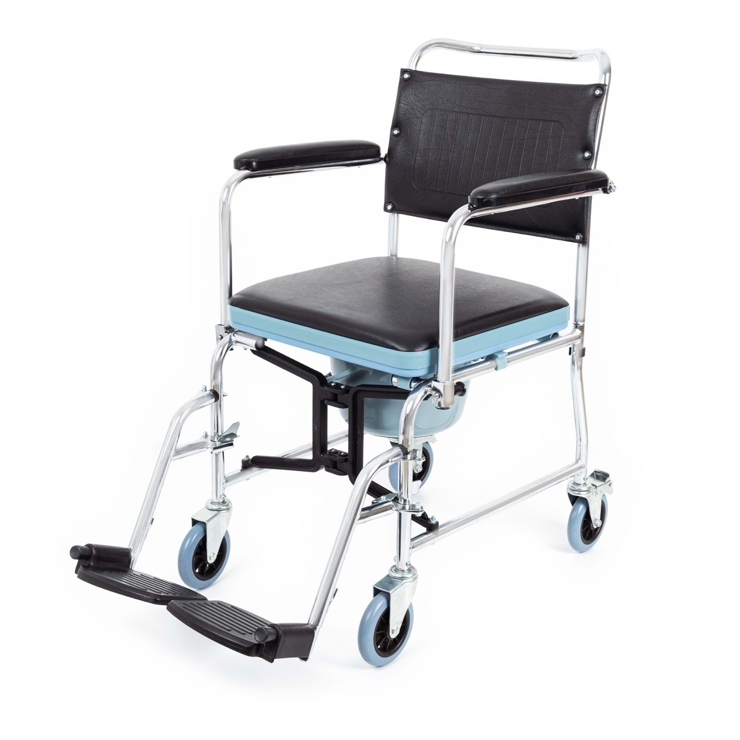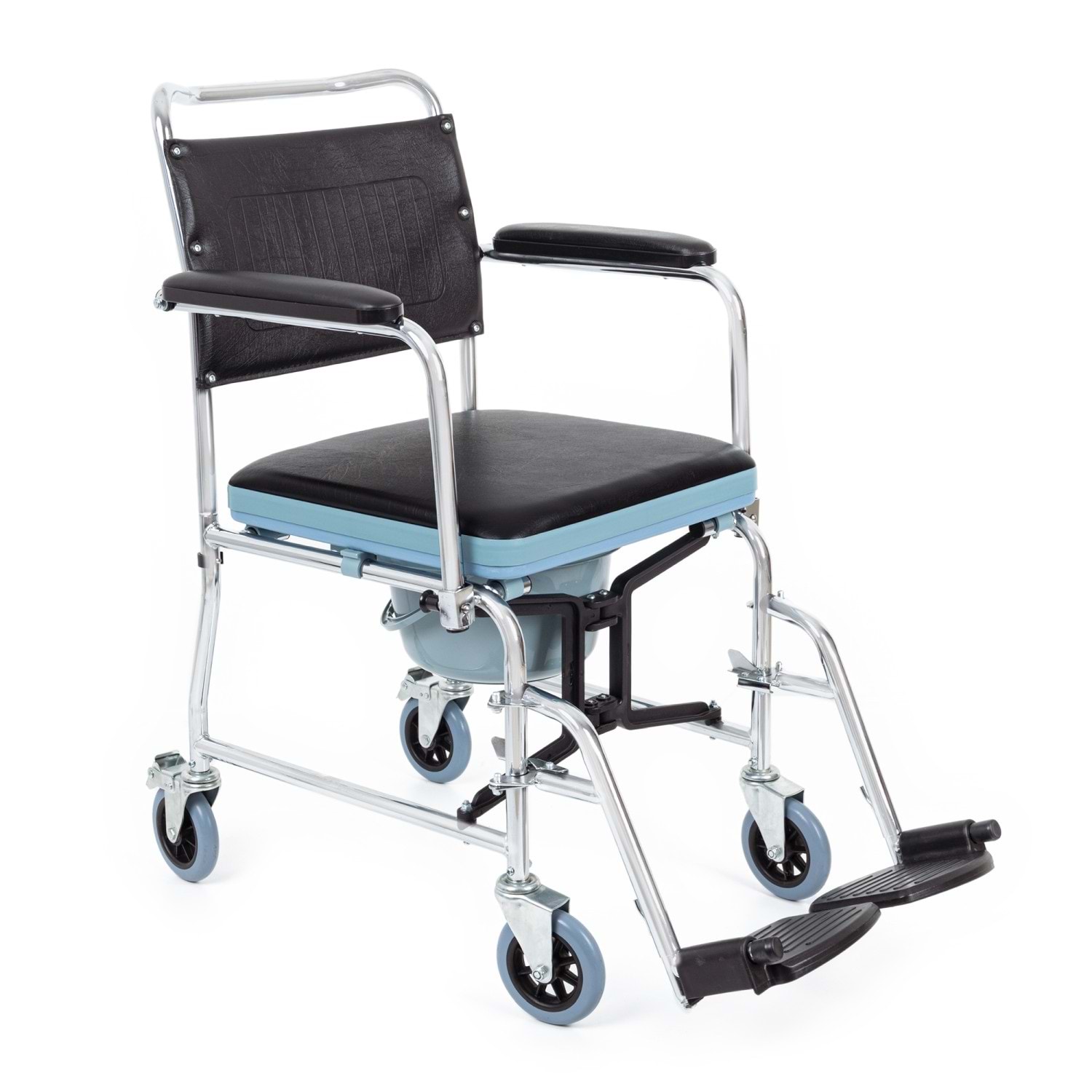 İç Mekanlarda Kullanıma Uygun Çelik Şase Korozyona Dayanıklı Nikelaj Kaplama Dolgu Ön ve Arka Tekerler Arka Tekerlerde Sabitleme Sistemi Tuvalet Aparatlı Hareketli Yan Kolçaklar Çıkarılabilir Yüksekliği Ayarlanabilir Ayaklar Kolay Temizlenebilen Bakteri Oluşumuna Karşı Dayanıklı Vinleks Döşeme Klozet Yüksekliği: 42 cm